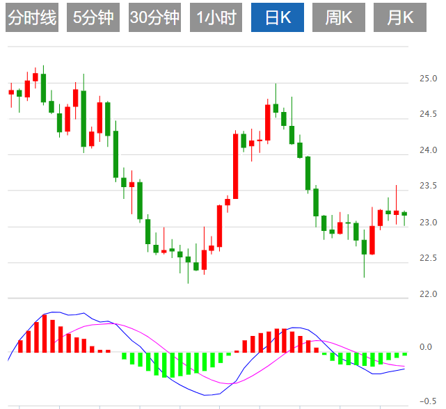 今日预期交易区间在23.20支撑位和24.00阻力位之间。