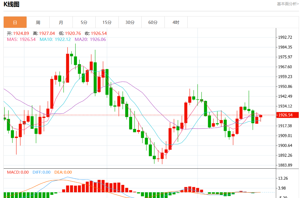 周一欧市盘中,现货黄金报1921.81,跌幅0.17%。