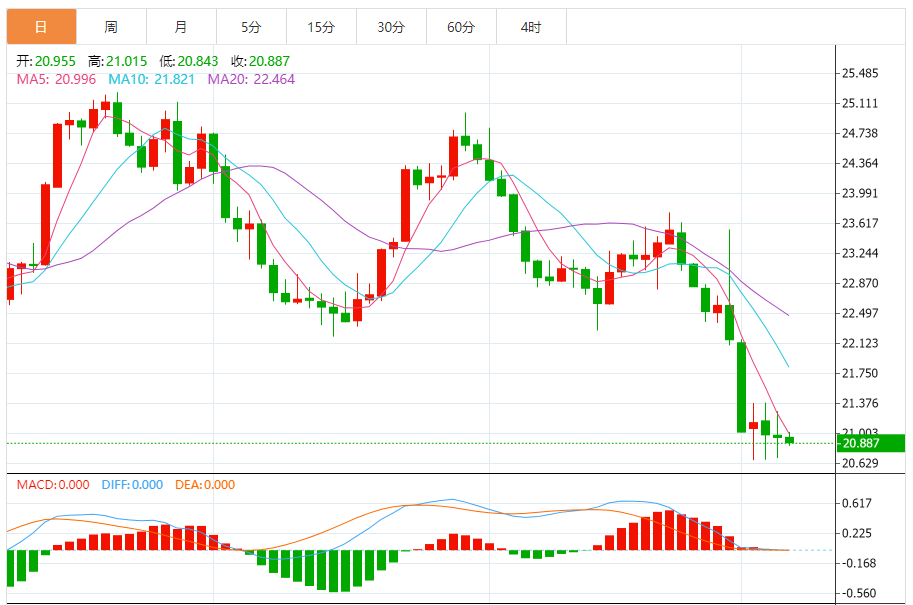 2)银技术面分析:白银期货正跌向20.80-21.60美元/盎司区间的低端。观点为看空,料跌向20.50-20美元/盎司,然后可能从上述区域反弹。