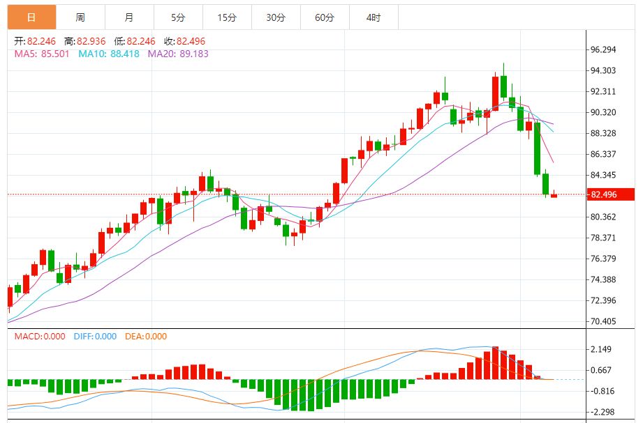 3)原油技术面分析:布伦特原油期货甚至跌破85美元/桶。现在布油价格可能跌向82美元/桶,甚至进一步跌向80美元/桶。WTI原油期货进一步跌破83美元/桶的支撑位。观点为看跌,WTI油价料跌向80美元/桶,甚至进一步跌向78美元/桶。