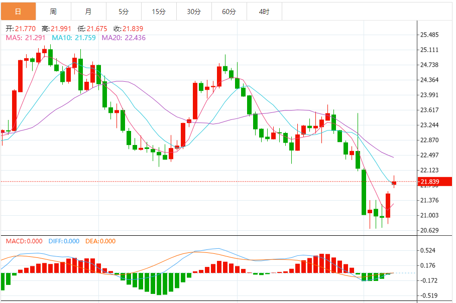 2)银技术面分析:白银期货大幅上升,突破20.80-21.60美元/盎司区间的上端。现在,白银期货有进一步升向22.50-23美元/盎司的空间。