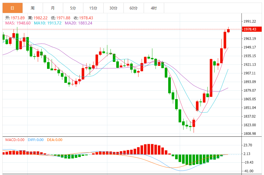 周五(10月20日),黄金期货维持日内强劲升势,期金目前位于1991美元/盎司附近,日内上升10美元。黄金期货和白银期货继续上升,短期内仍看涨。