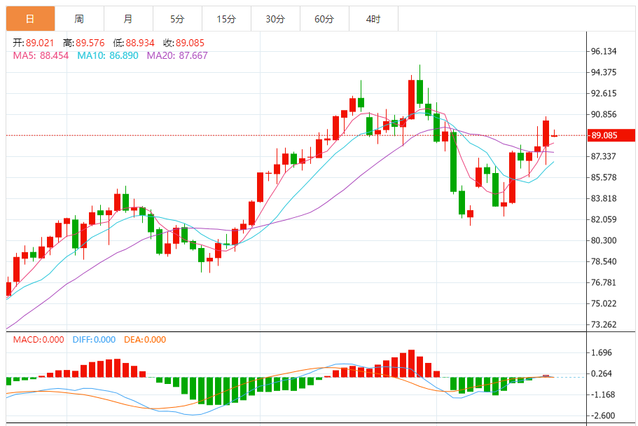 3)原油技术面分析:布伦特原油期货已如预期般涨向94美元/桶。94-95美元/桶水平是短期阻力位,如果无法被攻克,可能会导致布油价格回落向90-89美元/桶。要想涨向97-98美元/桶,布油价格需要强势突破95美元/桶。WTI原油期货已突破88美元/桶,并如预期的那样向90美元/桶迈进。如果持续突破90美元/桶,WTI油价可能会涨向94-95美元/桶;否则,不能否定WTI油价重新跌向86-85美元/桶的可能性。