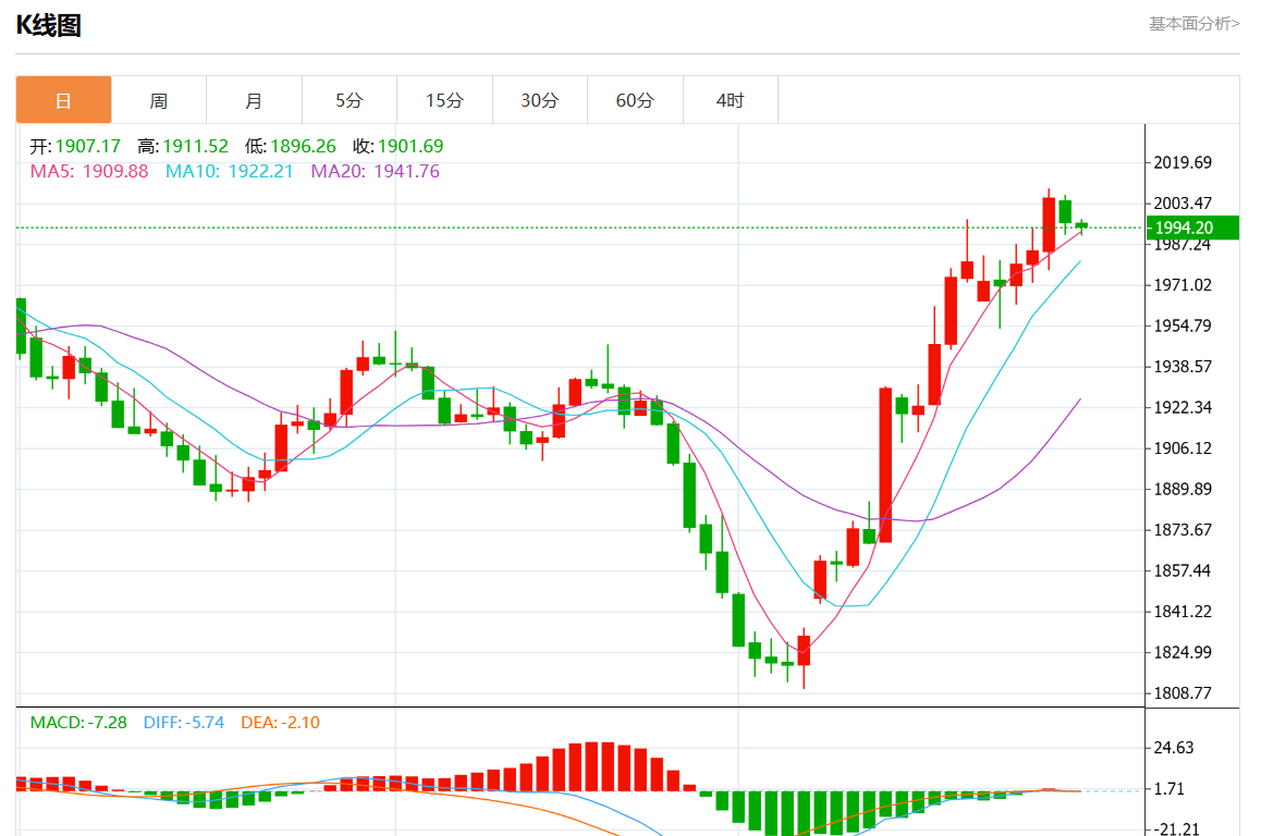 周二欧市盘中,现货黄金报1991.24,涨幅0.01%。
