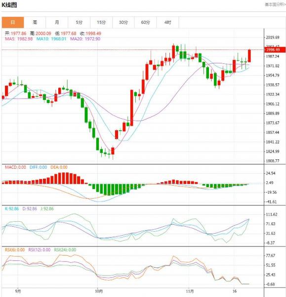 星期二(11月21日),油价跌0.32%。由于OPEC+这个星期也许会有减产可能,隔夜两油反弹。阿联酋能源部长称,目前的冲突不会对石油产生短期影响。缺乏石油投资仍然是一个中期的问题。