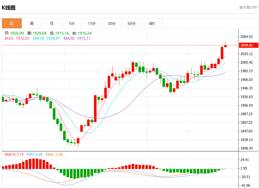 周三欧市盘中,现货黄金报2041.90,涨幅0.05%。