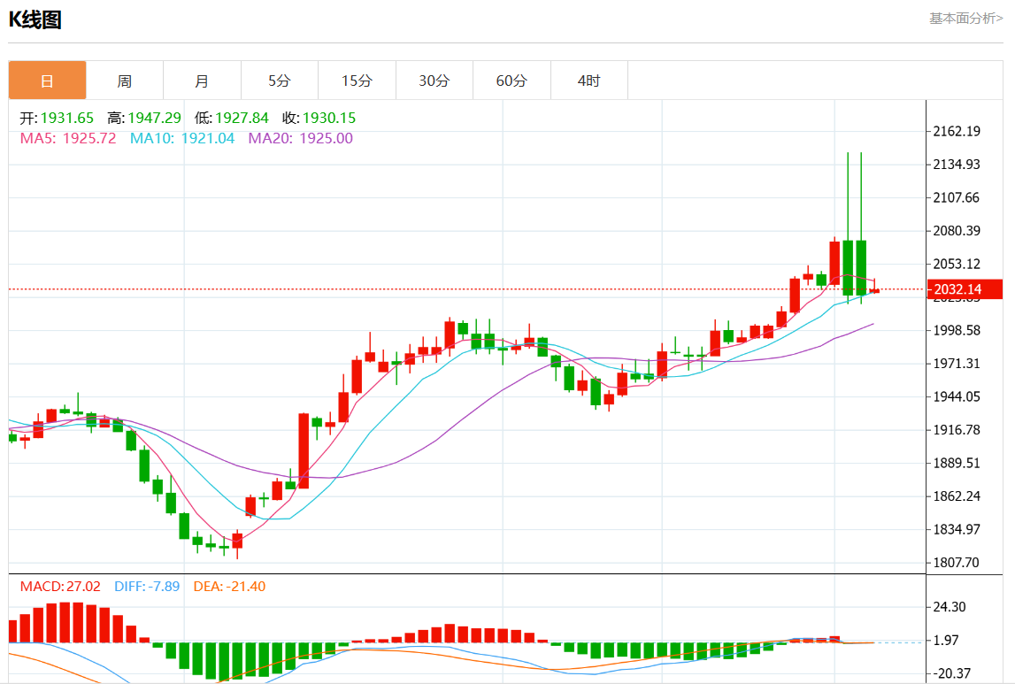 周二欧市盘中,现货黄金报2032.70,涨幅0.19%。
