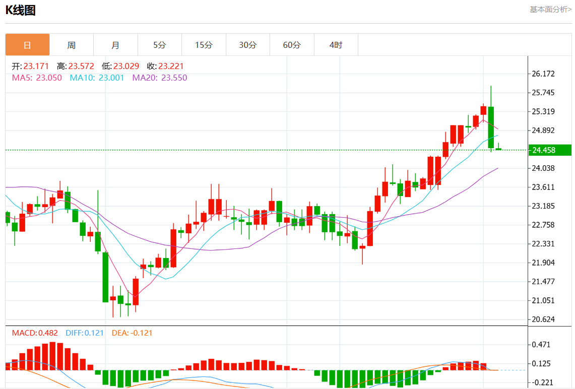 周二欧市盘中,现货白银报24.470,跌幅0.04%。