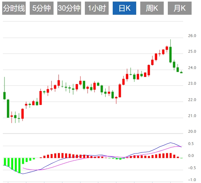 今日预期交易区间在23.40支撑位和24.30阻力位之间。