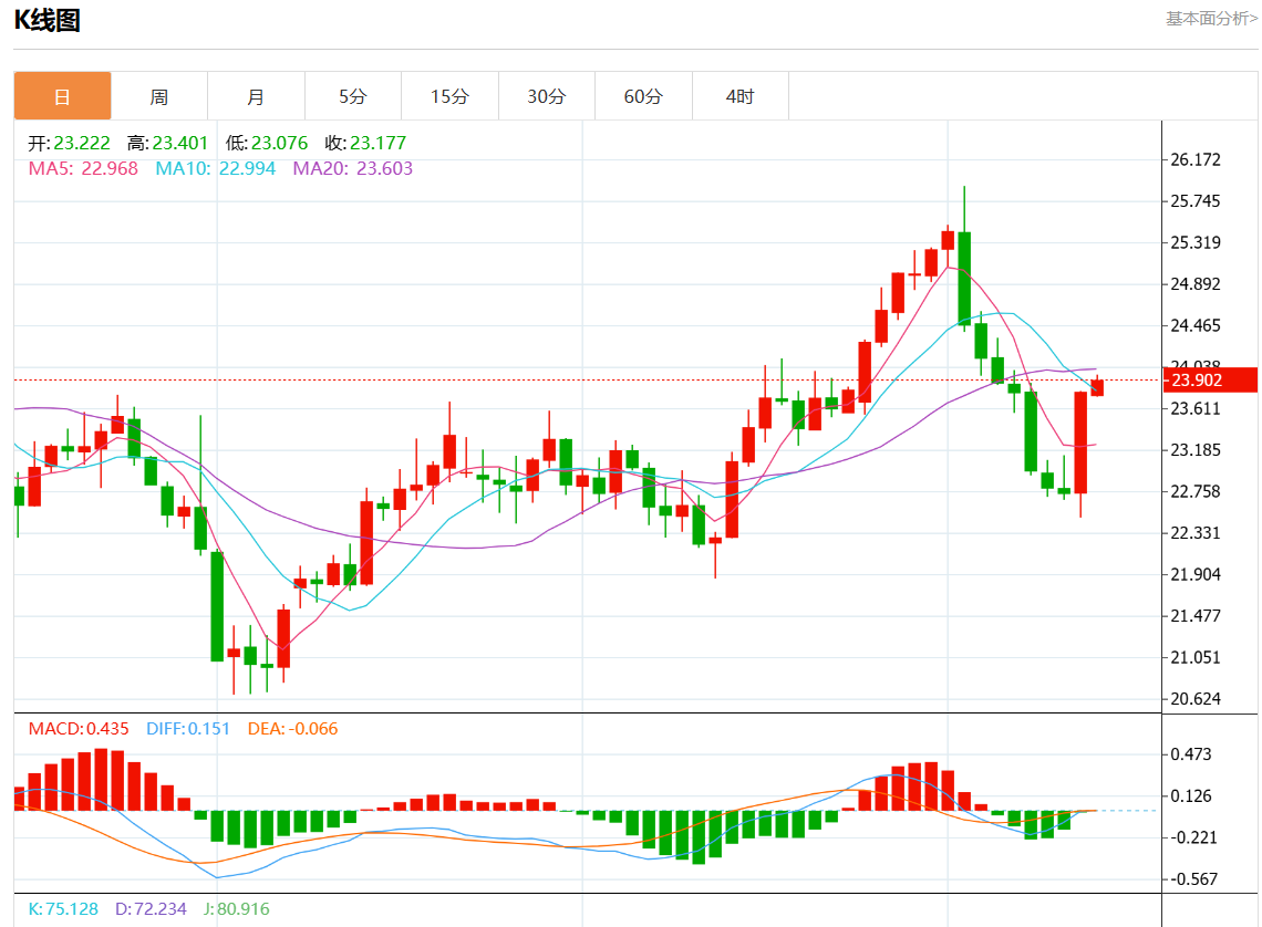 周四欧市盘中,现货白银报24.090,跌幅1.30%。