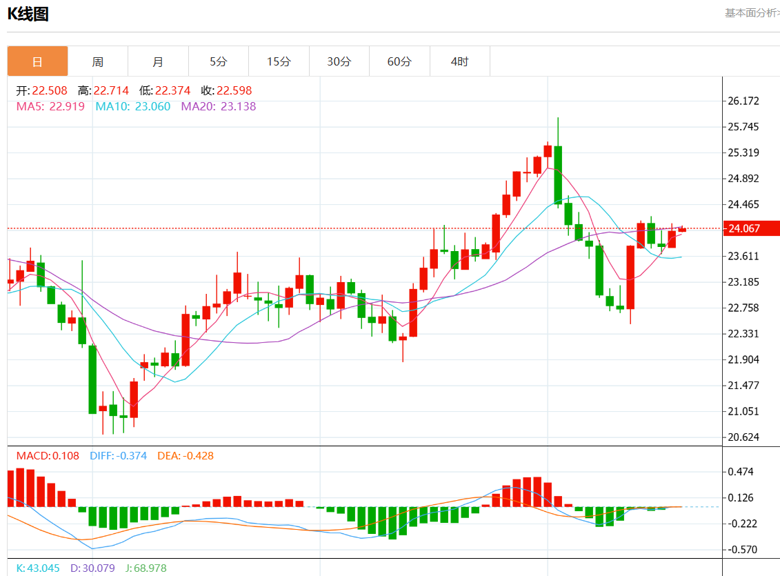周三欧市盘中,现货白银报24.070,涨幅0.21%。
