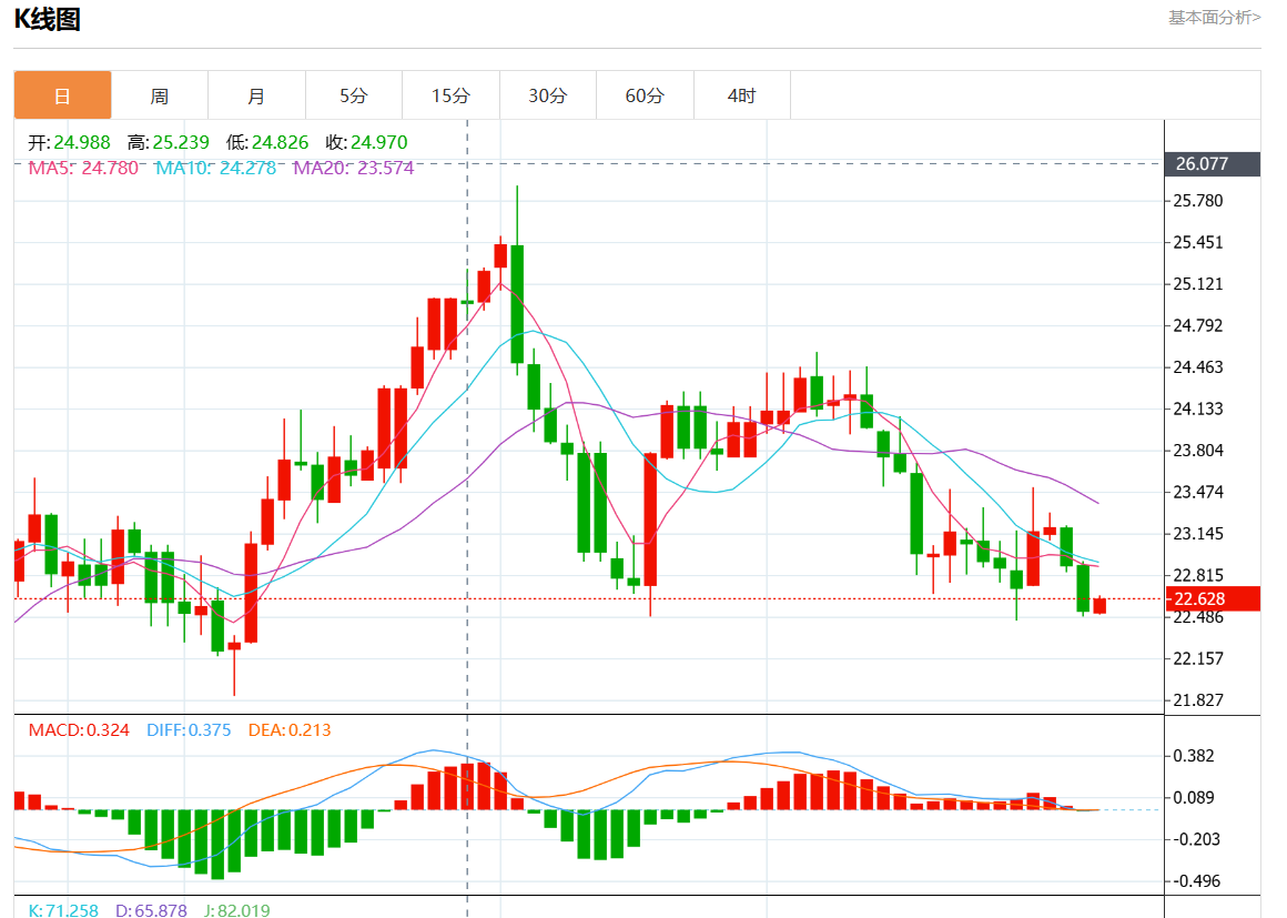 周四欧市盘中,现货白银报22.580,涨幅0.22%。