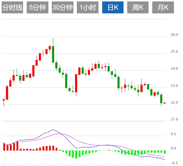 今天的预期交易区间在21.80支撑位和22.80阻力位之间。