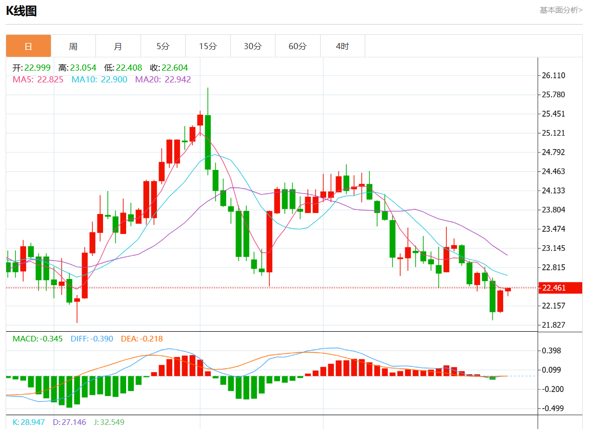 周三欧市盘中,现货白银报22.610,涨幅0.85%。