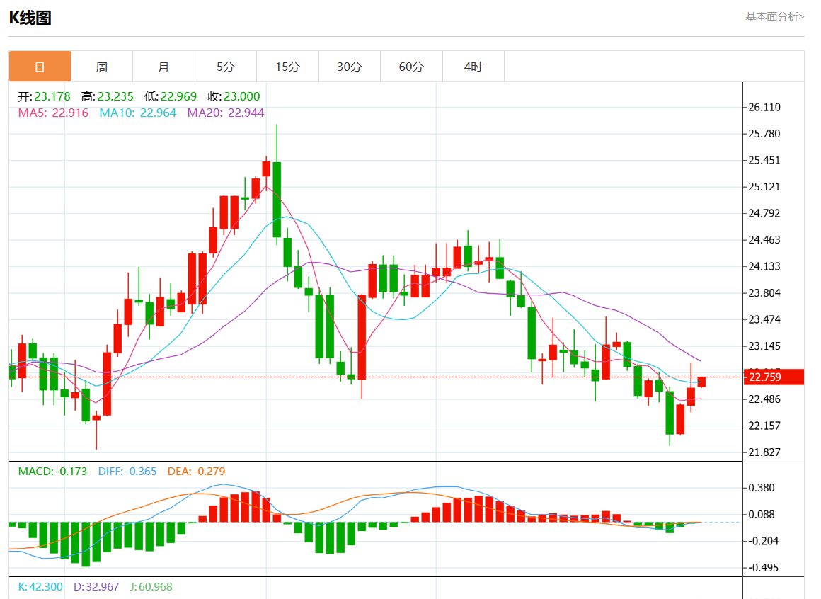 周四欧市盘中,现货白银报22.730,涨幅0.35%。