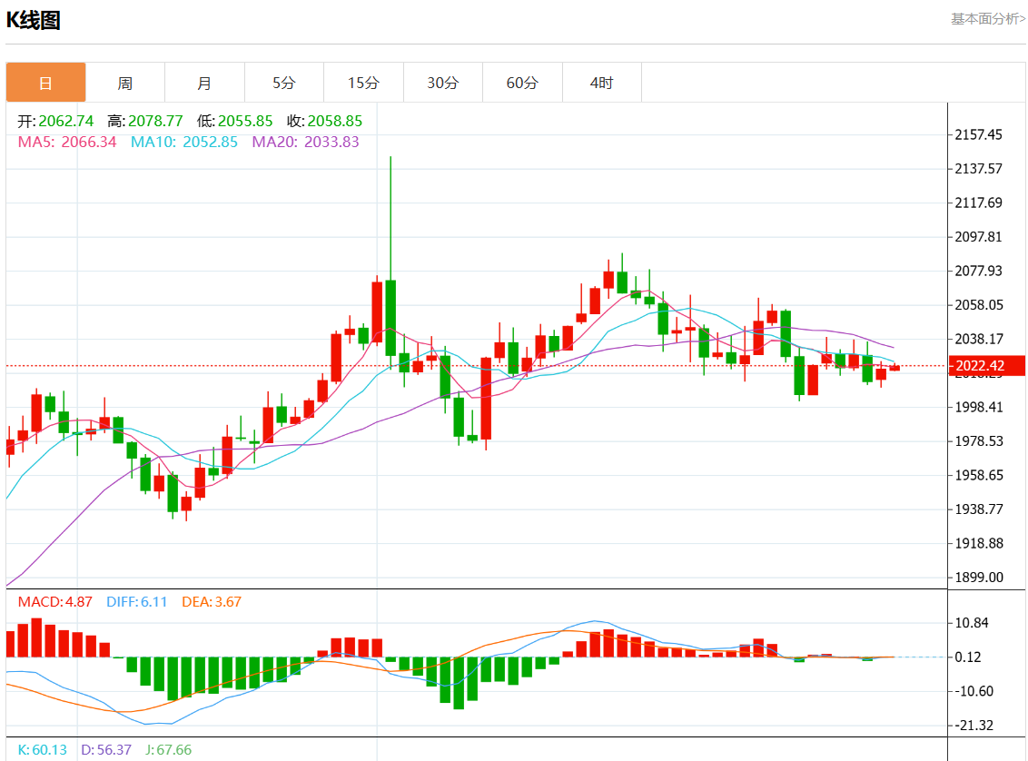 周五欧市盘中,现货黄金报2021.00,涨幅0.02%。