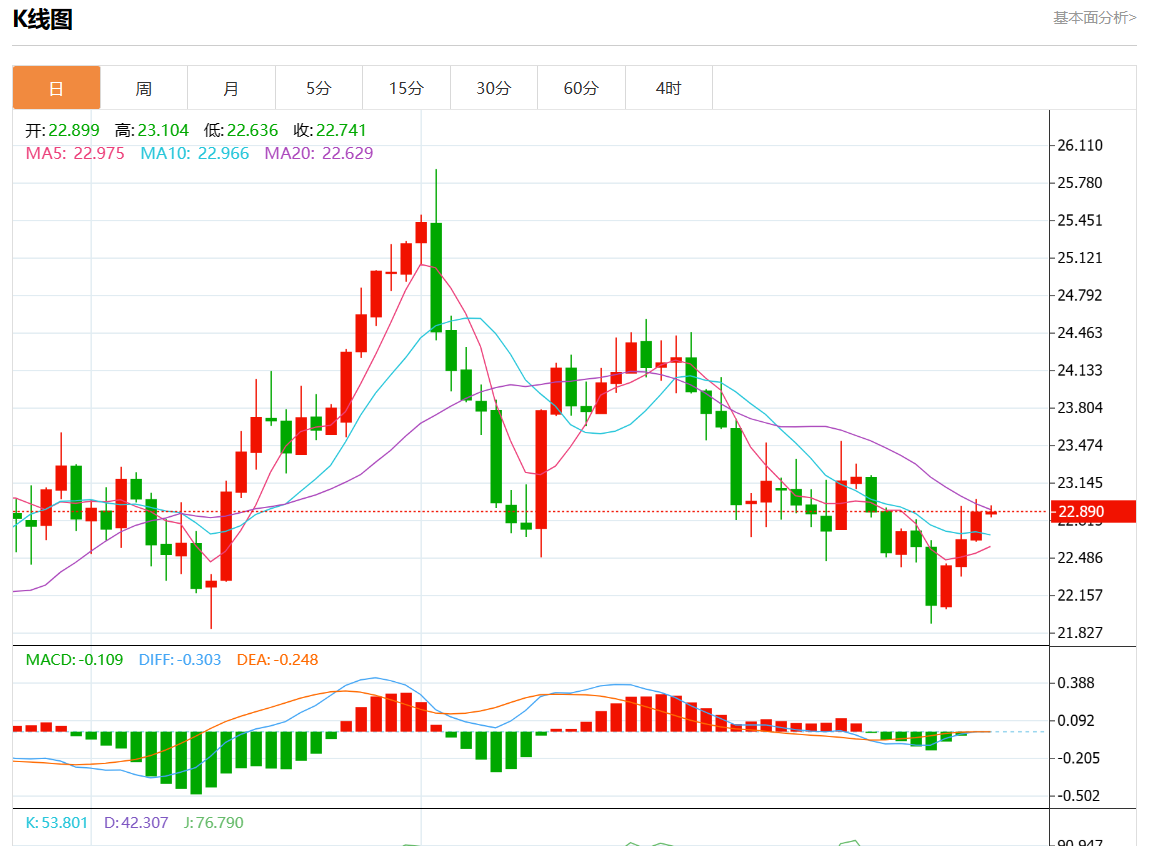 周五欧市盘中,现货白银报22.850,跌幅0.17%。