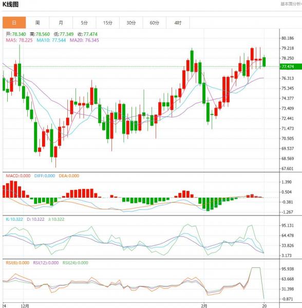 原油此前一波强势反弹从71附近上涨至78一线,在前高79附近出现上涨放缓,形态上看目前行情仍然是处于强势之中,昨日原油回踩77.6附近企稳,虽然上升力度不大,凌晨和早间盘整抗跌说明原油处于强势有蓄势的动机, 盘事时间越长突破的机率就越大,因此今日依然是保持逢低做多思路,晚间77.6附近多,防守77,目标79-80。