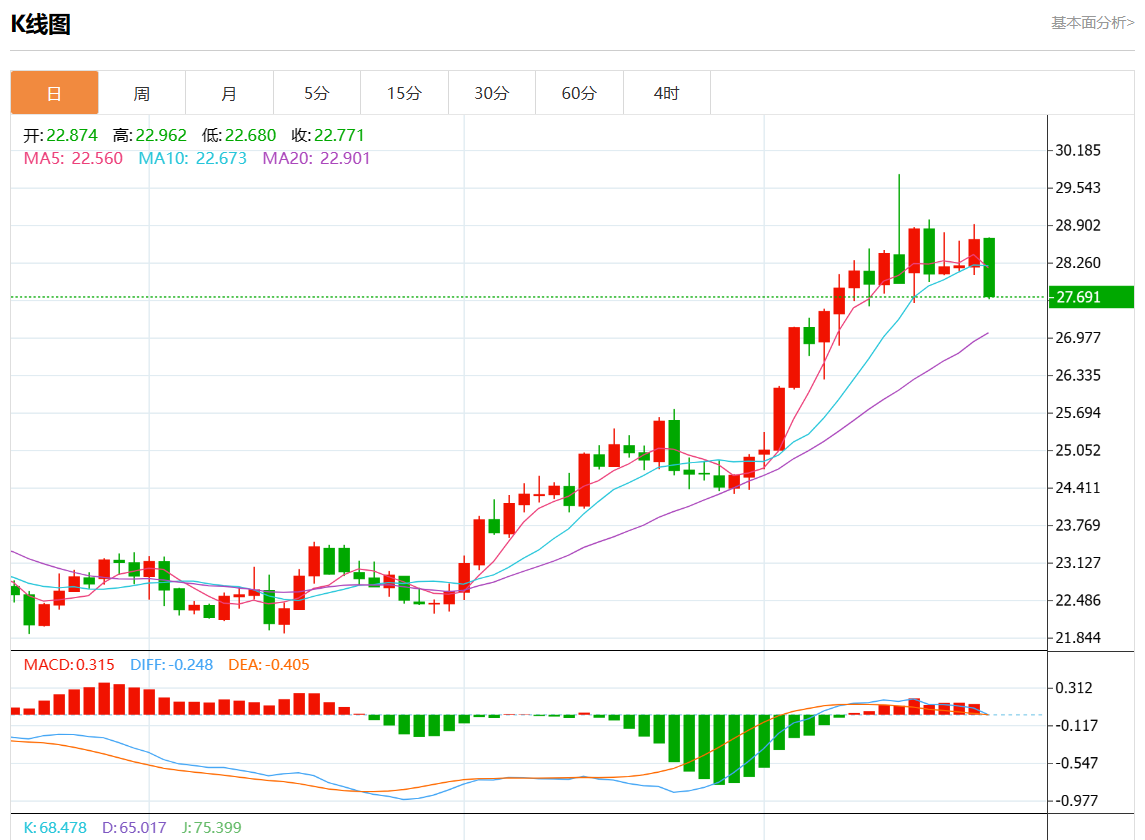 ÖÜÎåÅ·ÊÐÅÌÖУ¬ÏÖ»õ°×Òø±¨27.830£¬µø·ù2.93%¡£