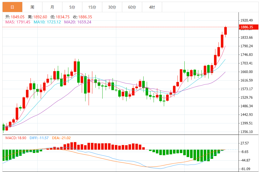 金价于2277.0一线获得多头买盘震荡上行,最高达到2449.0一线附近受到卖盘的打压,出现快速回落,最低达到2325.0一线,不破近期的起涨点,随后展开震荡上行,形成多头上行的拐点信号。均线系统上,价格上穿短期60均线,表明黄金短期有走强的可能。操作上尝试逢低做多,建议于均线的支撑位2342.5附近尝试布局多单,上行关注第一压力位2367.0一线,如果上破多头将进一步测试2397.0一线。