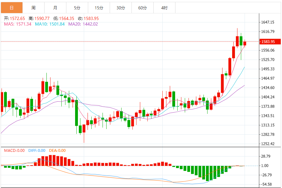 今日最新铂金行情:1584.15