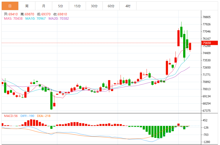 今日最新铜行情:75630