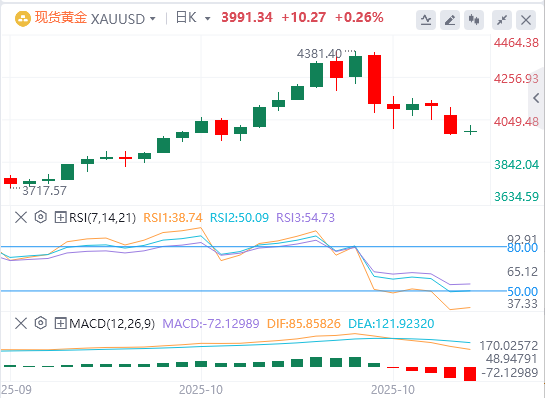 此次金价失守4000美元,主要受美国发起的经贸冲突趋于缓和影响,市场风险偏好提升,华尔街主要股指创新高,而作为避险资产的黄金,价格与风险偏好负相关,投资者抛售黄金转向风险资产,10月20日黄金曾达4381.1美元/盎司的历史高位,此后随贸易乐观情绪升温持续回落。同时,技术性卖盘也加剧了金价下行,前期黄金快速上涨积累了大量获利盘,部分投资者获利了结引发抛售。