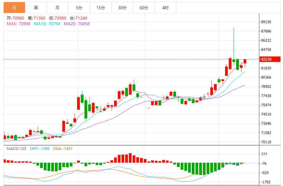 白银成为晚间最亮眼品种,周二暴涨4.34%突破60美元后,晚间续创61.8美元新高,核心驱动来自供应短缺与工业需求爆发。太阳能、电动汽车等行业的强劲需求,叠加全球白银库存持续下降,形成基本面支撑;而美联储降息预期推动投机资金涌入,进一步放大涨势。不过需警惕风险:上期所已通过提保措施调控市场,且RSI指标升至75超买区间,短期存在获利回吐压力。