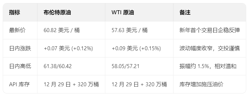 今日晚间黄金、白银、原油行情走势分析(2026年1月2日)