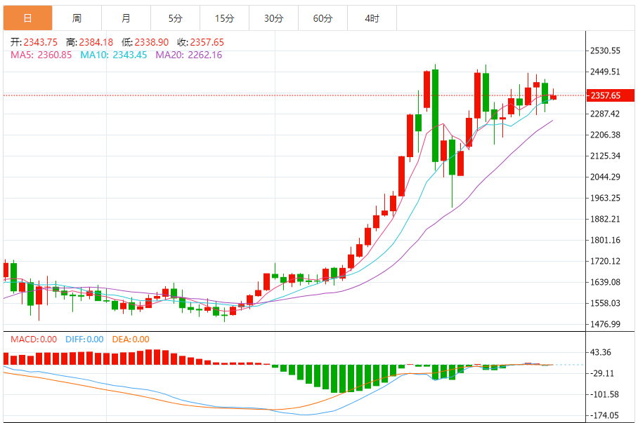 今日最新铂金行情:2357.75