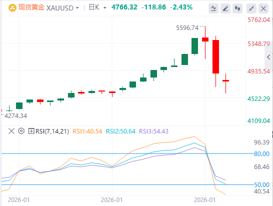2026年1月注定将被载入贵金属交易史册。上周五(1月30日),现货黄金价格从上周四的纪录高点5597美元/盎司骤降9.5%,盘中最低触及4688.6美元/盎司,这不仅是1983年以来黄金的最大单日跌幅,整个月份的波动幅度也创下新高。银价的表现更为惨烈,现货银从上周四的121.56美元/盎司高点暴跌,收于85.29美元/盎司,盘中一度触及73.54美元,创下伦敦证券交易所自1982年以来的纪录跌幅。