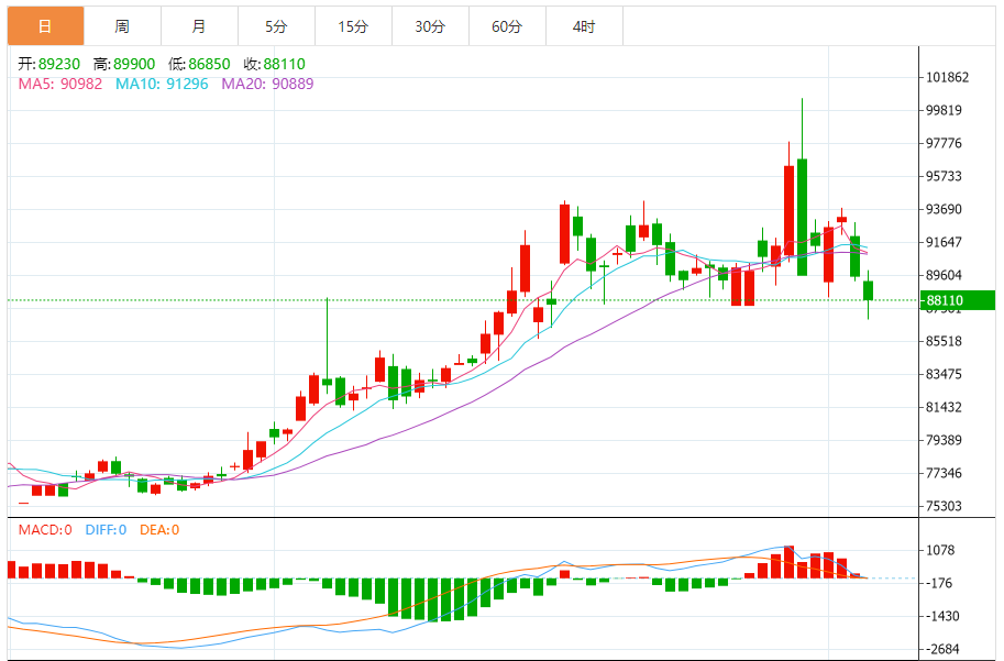 美元指数上昨日再次承压,现处于82.1800处,这是美元指数连续四个交易日的收阴,对黄金的价格带来一定的支撑。