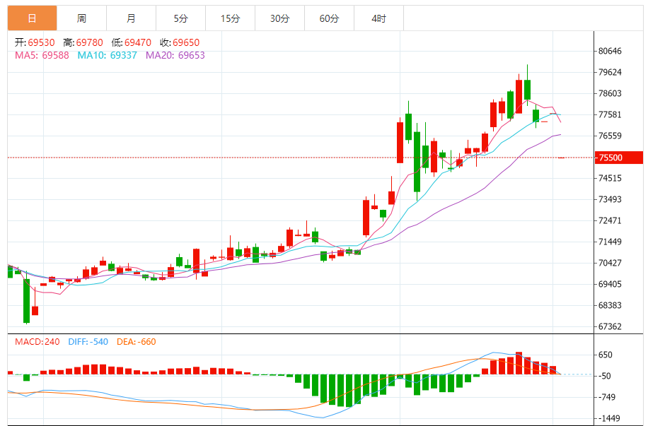 铜价格走势图今日最新铜价行情(2025年11月7日) 今日最新铜行情:75580 备注:以上铜价格仅供参考,请以官方价格为准。