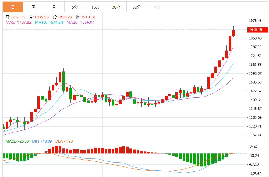 铂金价格走势图今日最新铂金行情(2025年12月19日) 今日最新铂金行情:1916.12 备注:以上铂金价格仅供参考,请以官方价格为准。