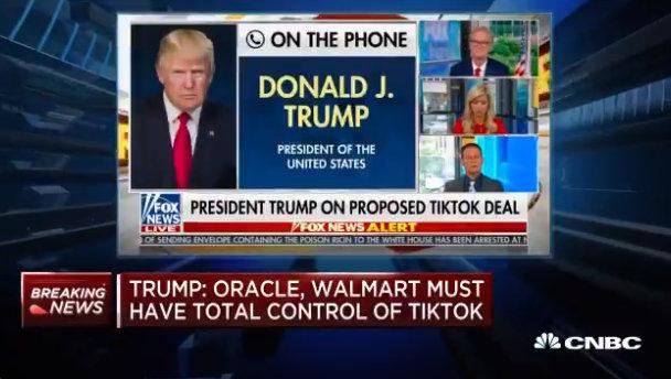 据路透社9月21日报道,美国总统府特朗普当天早晨接受福克斯新闻采访时威胁称,如果字节跳动保持TikTok Global的控制权,那么他将不会批准字节跳动与甲骨文和沃尔玛公司之间的交易。他声称:“如果我们发现他们(美国公司)没有完全的控制权,那么我们就不会批准这笔交易......我们仍将密切关注(交易)。”
