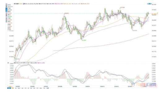 从美元指数日图级别来看,美指依旧处于向上阶段,并且始终踩着5天线向上,表明多头行情非常旺盛。目前,均线系统还未完全形成多头排列,而60天线也将持续与下方均线开出金叉,后市必有共振带来的拉回行情。同时,行情也接近前期高点,压力将会越来越大,随时都有回调的可能。狮子金融建议,当前行情依旧有走头肩顶的可能,涨高的过程中,切勿追高。