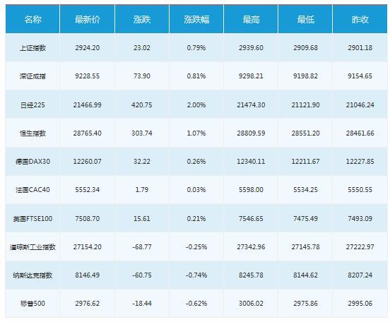 全球主要市场行情一览
