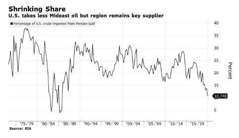 由于页岩油生产的蓬勃发展,美国去年从波斯湾的原油进口量减少到30年来的最低点。尽管如此,中东原油仍占美国进口的10%以上。