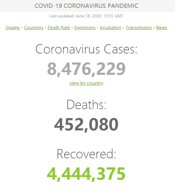 据Worldometers的实时统计数据显示,截至北京时间21时55分,全球新冠肺炎确诊病例累计超过847万,达到847万6229例,死亡45万2080例。美国确诊病例达到223万5678例,死亡11万9955例。