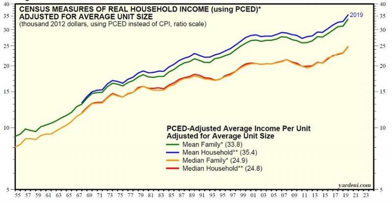 Ed Yardeni的观点是,许多更可靠的收入指标证实,大多数美国人的生活水平多年来一直有所改善。现在,即使是美国人口普查局的数据也证实了他的说法。