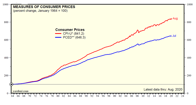 众所周知,CPI是倾向上升的,特别是与个人消费支出平减指数(PCED)相比,如下图所示