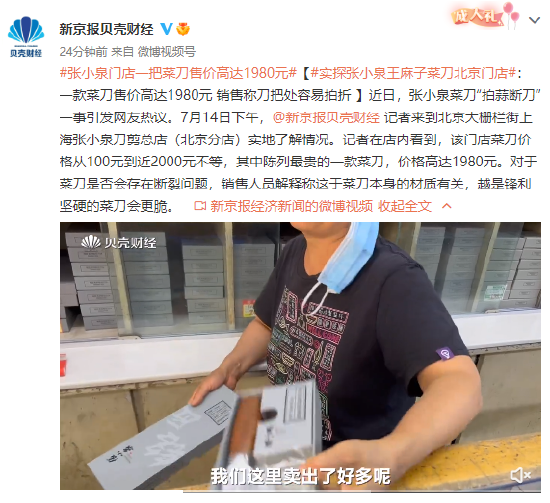 近日,张小泉菜刀“拍蒜断刀”一事引发网友热议。7月14日下午,@新京报贝壳财经 记者来到北京大栅栏街上海张小泉刀剪总店(北京分店)实地了解情况。