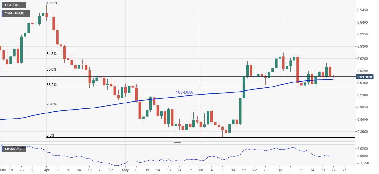 然而,100日移动均线挑战了美元兑瑞郎在0.9160附近的短期下跌,突破该水准可能会引导看跌者朝38.2%的斐波那契回调水平0.9135方向走软,然后对卖方来说会突出本月低点0.9117。