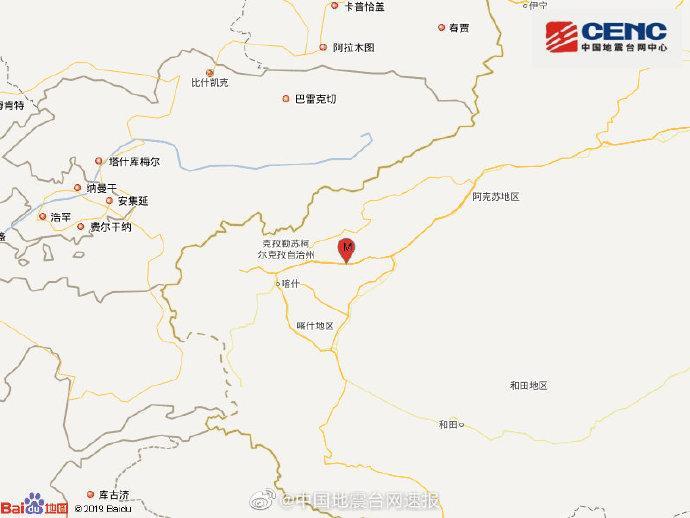 据中国地震台网正式测定:1月19日23时49分在新疆克孜勒苏州阿图什市(北纬39.89度,东经77.47度)发生4.3级地震,震源深度16千米。