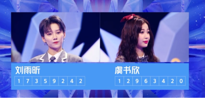 最终舞台表演《猎》和《A LITTLE BIT》两首评价曲的中心位由训练生内投投出,分别是许佳琪和上官喜爱。两个表演结束后,开启了紧张的公布排名阶段,率先公布了第八位到第三位的排名,而后的中心位之争在两位人气王刘雨昕和虞书欣之间产生,历经半年的训练与成长,最终,刘雨昕凭借17359242助力值成为中心位,一向淡定的她在发表感言时禁不住泪洒现场,“我做到了,这个夏天没有留下遗憾。”