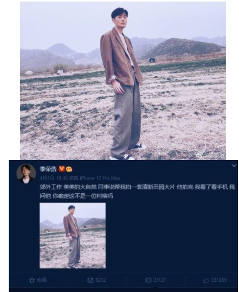 李荣浩晒出了自己的全新“田园风光大片”之后,网友们纷纷表示很帅气。而他本人却吐槽称像“村痞”。他配文表示:“郊外工作,美美的大自然,同事说帮我拍一套清新田园大片,他拍完,我看了看手机,我问他,你确定这不是一位村痞吗?”