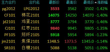 11月16日讯 国内期货市场开盘,商品期货多数上涨,化工表现偏强,甲醇、苯乙烯涨超3%,焦炭、沪银等涨逾2%,沥青、PP等涨超1%,纯碱、热卷等小幅上涨;鸡蛋、NR、LU等跌超1%,白糖、苹果、铁矿等小幅下跌。