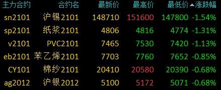 11月19日讯 国内期货市场开盘,商品期货涨跌参半,豆二涨近4%,棕榈、豆油等涨超2%,郑醇、玻璃等涨超1%,螺纹、热卷、鸡蛋等小幅上涨;沪锡、纸浆等跌超1%,白糖、塑料等小幅下跌。国际铜期货今日挂牌,国际铜主力合约开盘跌0.9%,合约挂牌基准价为47680元/吨。