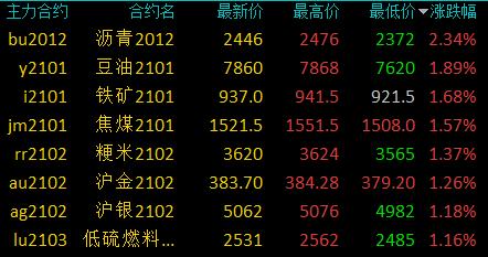 12月3日讯 国内期货市场收盘,商品期货多数收跌,有色板块跌幅居前,沪铝跌近4%,沪镍、郑醇跌超2%,沪铅跌近2%,豆粕、塑料、棉纱、螺纹跌超1%。沥青涨近3%,豆油、铁矿、焦煤涨超1%。