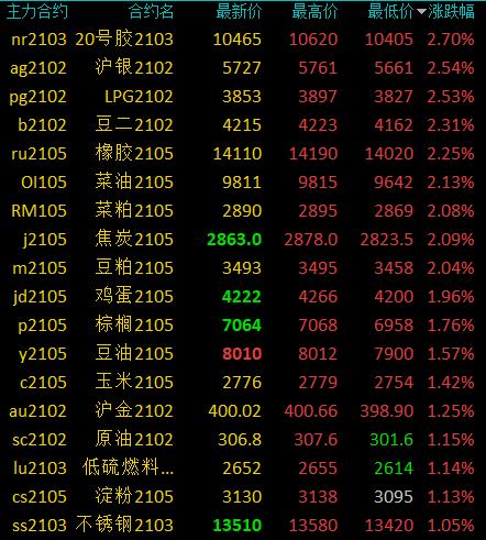 1月4日讯 国内期货市场开盘,商品期货多数高开,LPG、RB涨超2%,橡胶、菜粕等涨超1%,郑醇、PVC等小幅上涨;焦煤、沥青等小幅下跌。